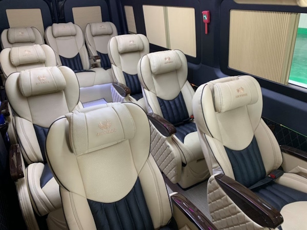 Xe Limousine 28 chỗ: Dòng xe cao cấp nhất, được thiết kế lại từ xe 45 chỗ Hyundai Universe, lắp đặt hệ thống ghế VIP sang trọng, phù hợp cho đoàn khách quan trọng.