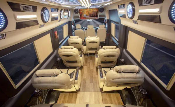 Xe Limousine 9 chỗ: "Chuyên cơ mặt đất" với nội thất sang trọng, ghế massage, TV, wifi.
