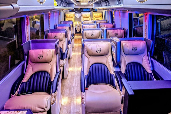 Đỉnh cao của sự sang trọng, thiết kế từ xe Universe với ghế VIP, mang lại trải nghiệm chuyên cơ mặt đất cho chuyến đi Hội An.