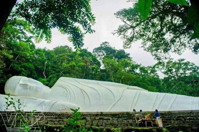 - Tượng Phật Thích Ca nhập niết bàn dài 49m được đặt giữa rừng núi, tạo nên khung cảnh hùng vĩ và trang nghiêm.